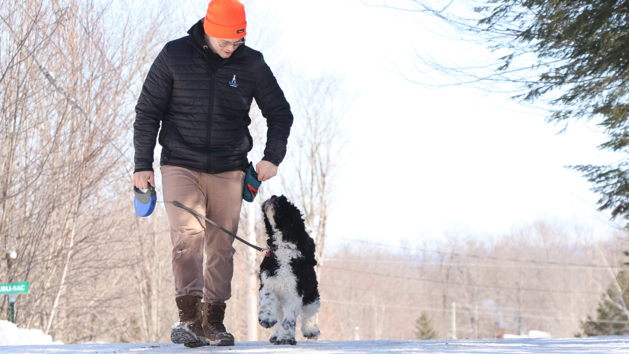 Fais-tu partie des gens qui adorent marcher avec son chien? Tu as présentement un jeune chien et tu rêves d'un jour marcher dans les rues paisiblement avec ton camarade au pied, calme et obéissant. Présentement, tu as plutôt l'impression de d'avoir un Road Runner sur le 4 x 4 qui tire comme un boeuf et qui veut voir un peu de tout? Cette vidéo t'aidera à bien démarrer ta marche avec ton chiot pour dans le futur avoir un chien au pied en contrôle, et ce, même en public!
